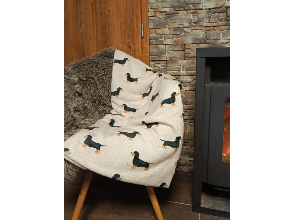 Úžasne jemná deka s potlačou hrubosrstých jazvečíkov, vyrobená z coral fleecu - potlačená a ušitá na Slovensku. Dostupná je v 2 veľkostiach : 100x150 cm a 150x200cm .