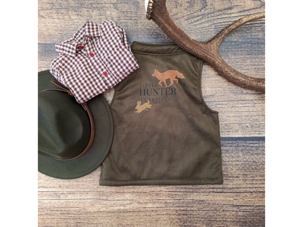 Detská vesta so vzhľadom brúsenej kože s potlačou Little hunter.