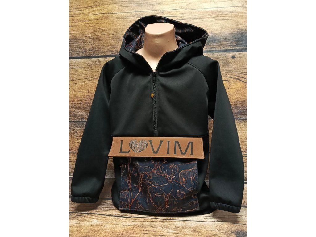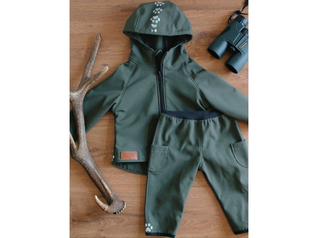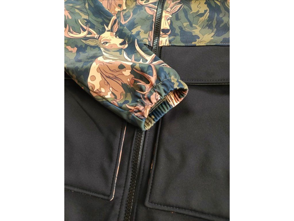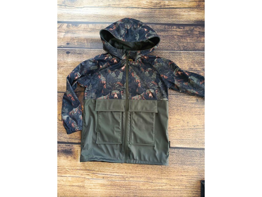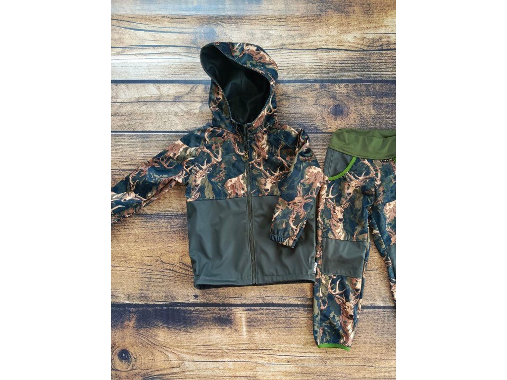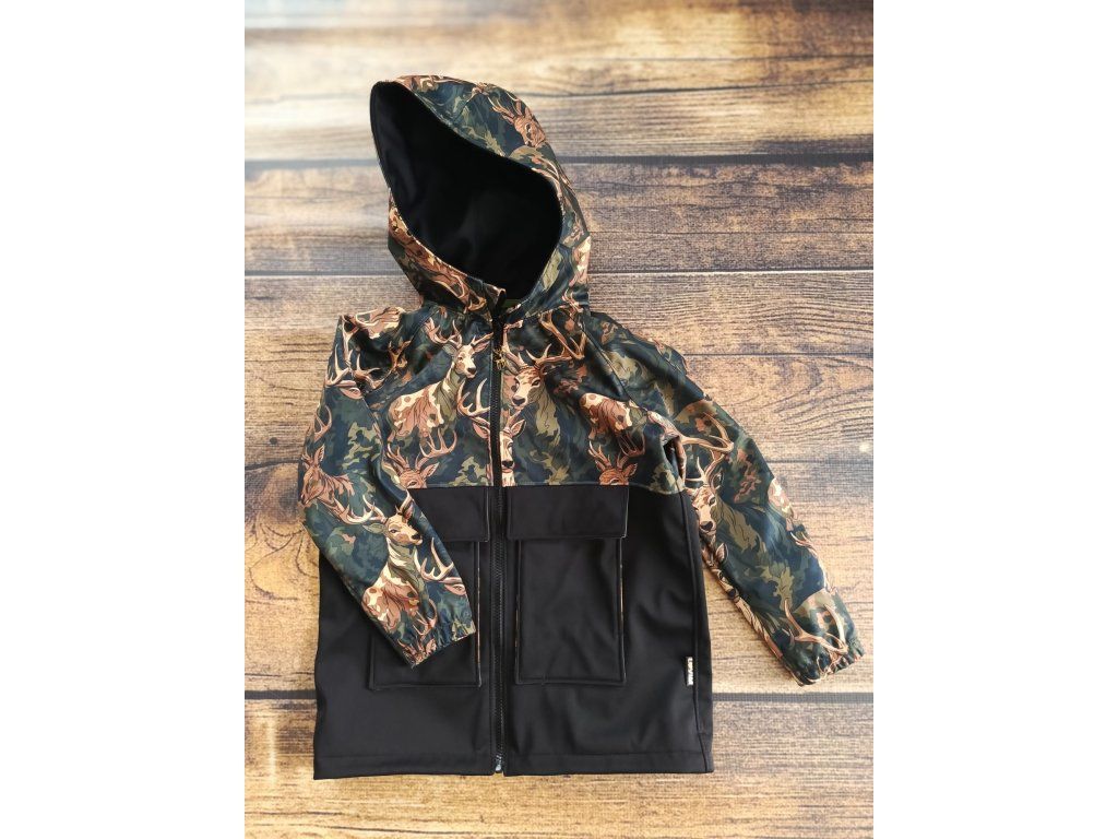 Štýlová a praktická detská softshellová bunda s lesným motívom.