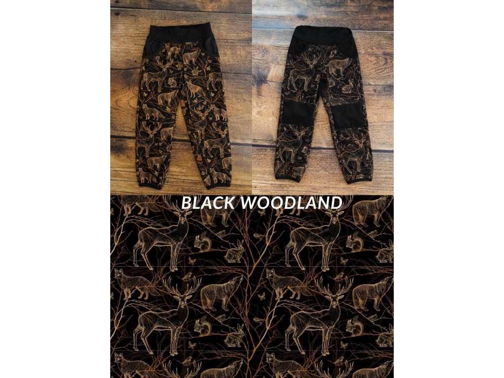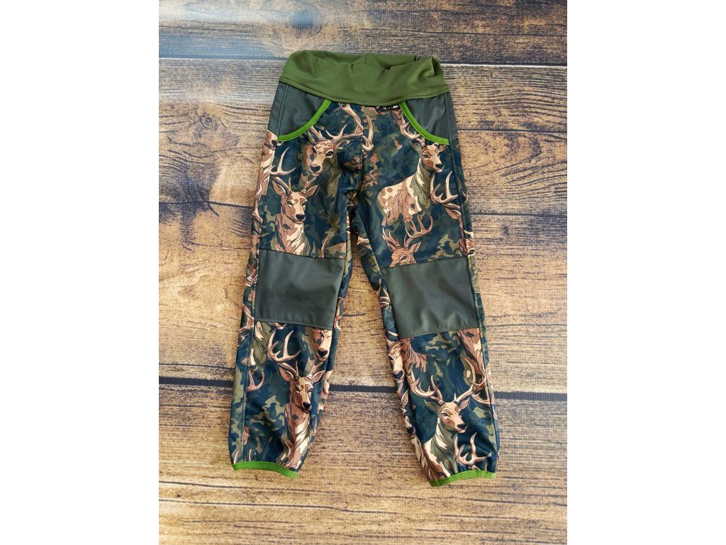 Štýlové a praktické detské softshellové nohavice s lesným motívom.
