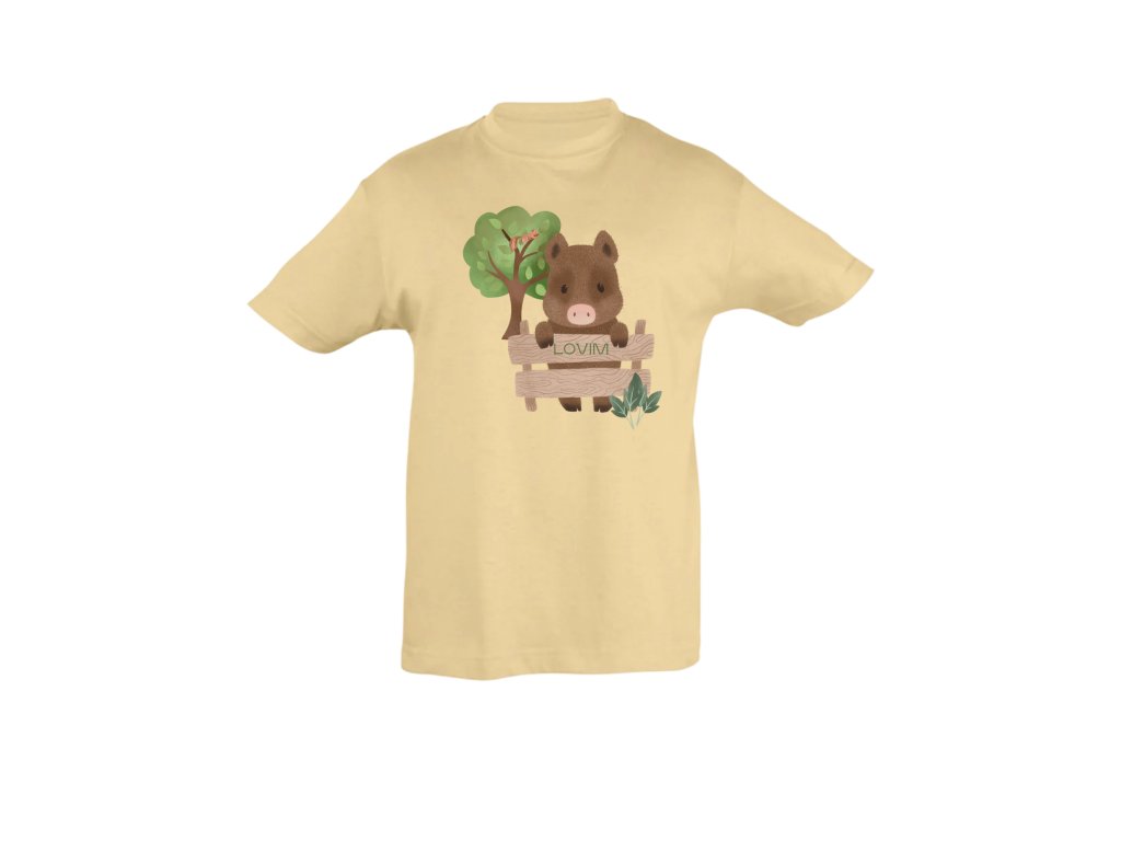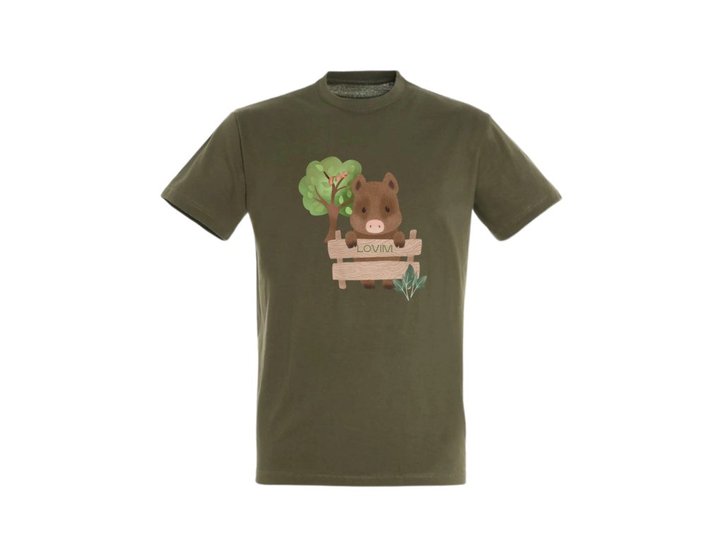 Detské tričko - farba sand/black/army green, predpraná 100% bavlna , dvojitý rebrovaný golier s elastanom, dvojité prešitie na golieri, ako aj na rukávoch a páse, zosilňujúca páska pri krku