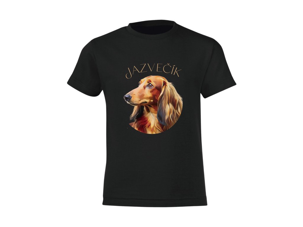 Detské bavlnené tričko s potlačou dlhosrstého jazvečíka