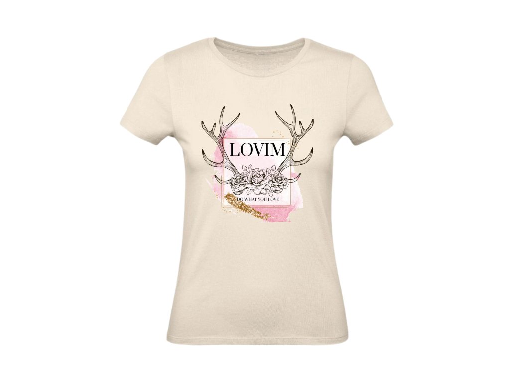 Dámske tričko, farba nature, 100% predpraná prstencová bavlna, úzky okrúhly výstrih z rebrovaného úpletu, zosilňujúca páska pri krku.