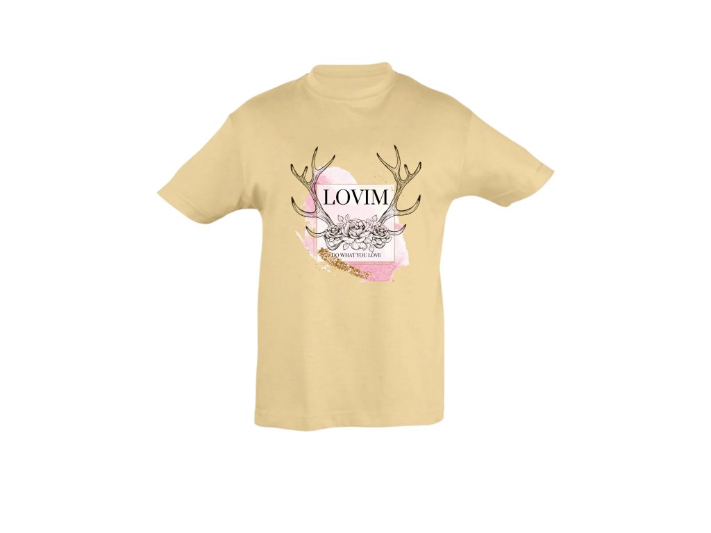 Detské tričko -  farba sand, predpraná 100% bavlna , dvojitý rebrovaný golier s elastanom, dvojité prešitie na golieri, ako aj na rukávoch a páse, zosilňujúca páska pri krku